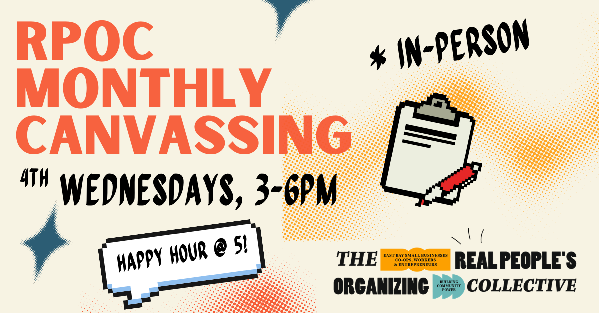 On Wednesday, March 25th, from 3–6 PM, we’re canvassing as the REAL People’s Organizing Collective, and we’re going where real community power lives, with our local storefronts and small businesses.
